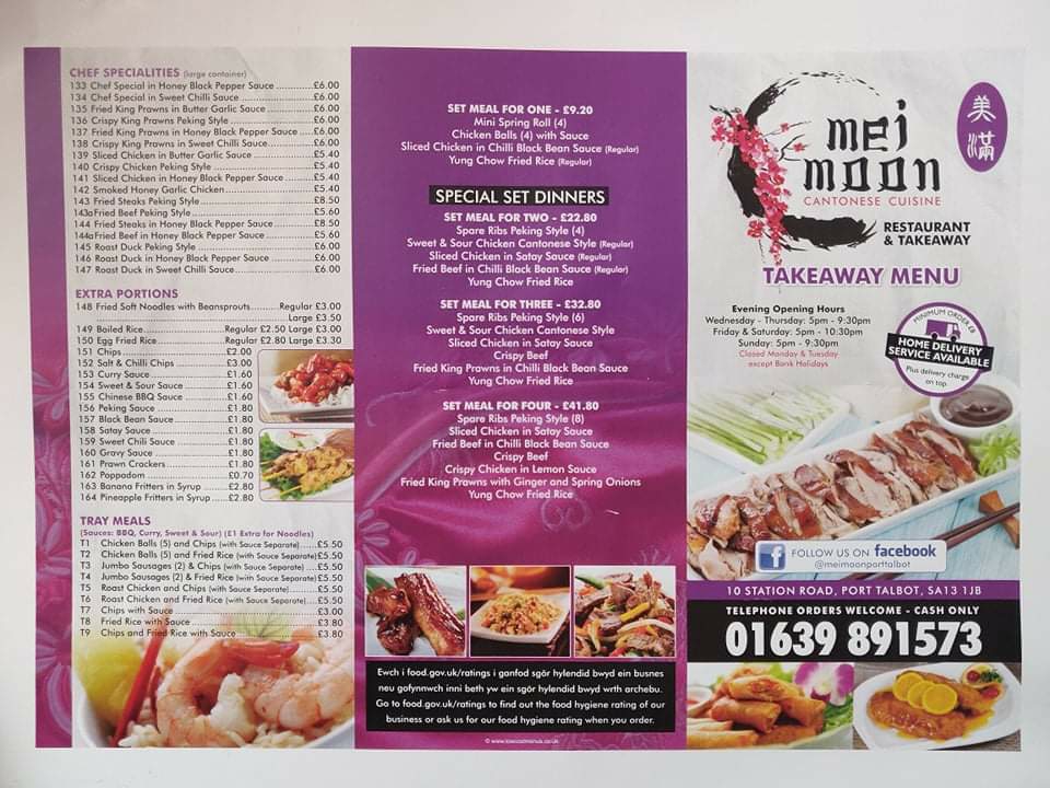 Welcome to Mei Moon, a charming gem located at 10 Station Rd, Port Talbot, where mouthwatering Chinese cuisine awaits. This establishment boasts a diverse menu, featuring an array of delectable fried rice dishes such as King Prawn Fried Rice and the flavorful Yung Chow Fried Rice.